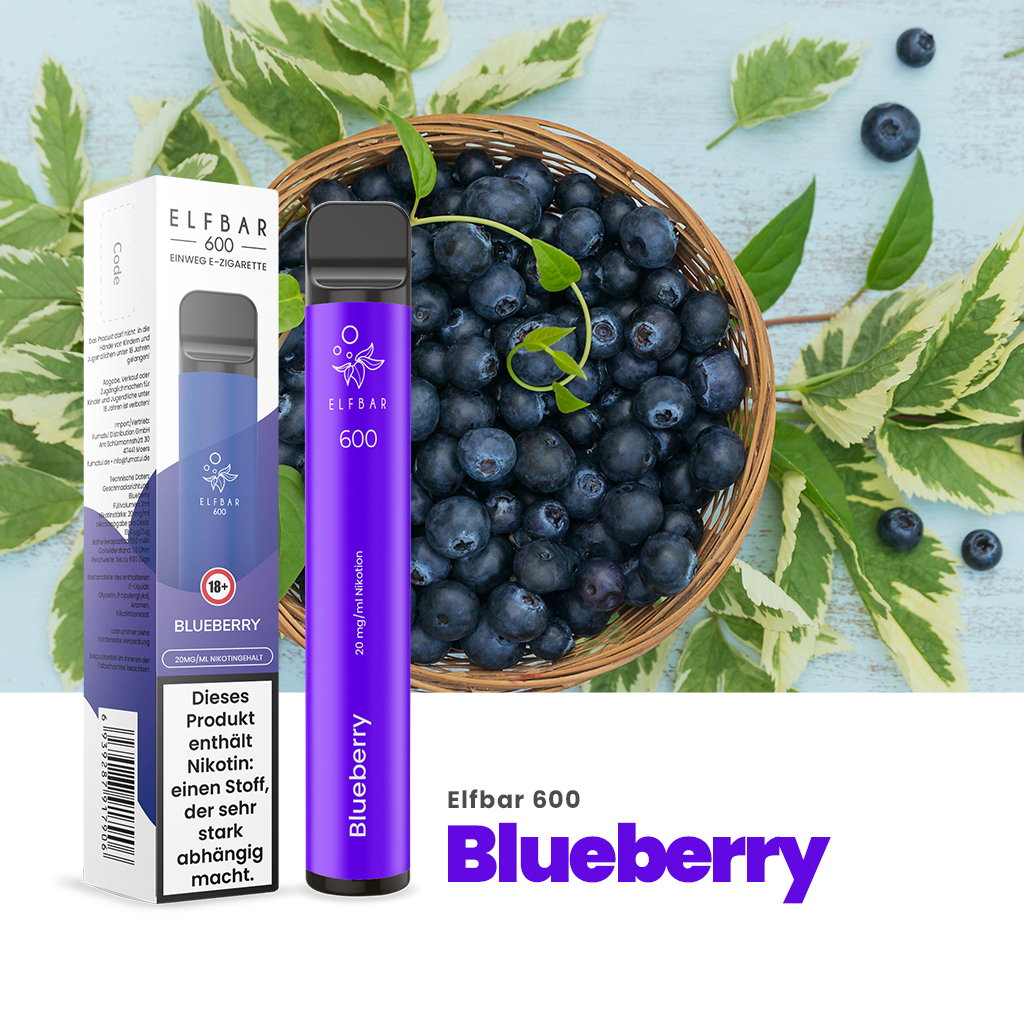 Elfbar 600 Blueberry bietet einen angenehm milden und ausgewogenen Geschmack von süßen Heidelbeeren mit einem Hauch von Frische.